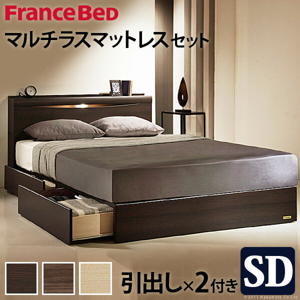 【送料無料】 フランスベッド セミダブル 収納 ライト・棚付きベッド 〔グラディス〕 引き出し付き セミダブル マルチラススーパースプリングマットレスセット 木製 日本製 宮付き コンセント ベッドライト マットレス付き